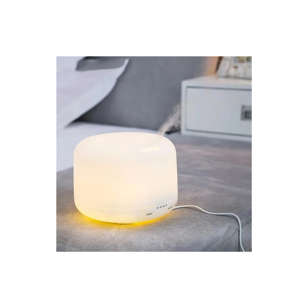 Ultrasonic Aroma Diffuser with LED Light – Relaxing and Aromatic Environments. Transform the atmosphere of your home with this ultrasonic aroma diffuser, perfect for creating a relaxing and welcoming atmosphere. Combining aromatherapy and soft LED lighting, it's the ideal complement for moments of relaxation or meditation. Key Features: Ultrasonic Technology: Generates a fine, constant mist that disperses essential oils, effectively and evenly perfuming the environment. Adjustable LED Light: Offers soft lighting in various colors, creating a tranquil and welcoming atmosphere. Timer Function: Features timer options (1h, 3h, 6h or continuous operation), adapting to your daily needs. Generous Capacity: Reservoir with capacity for several hours of operation without needing to be refilled. Modern and Compact Design: With an elegant finish, it adapts to any home or office environment. Benefits: Improves air quality, helping to reduce dryness and promoting a sense of well-being. Provides the benefits of aromatherapy, helping to relieve stress and improve mood. Creates a comfortable and relaxing environment, perfect for sleeping, meditating or working. Technical Specifications: Material: High-quality ABS plastic Functionality: Diffuser, humidifier and LED light. Timer: 1h, 3h, 6h, continuous. Color: White with multicolored LED lighting. Power mode: Mains connection.